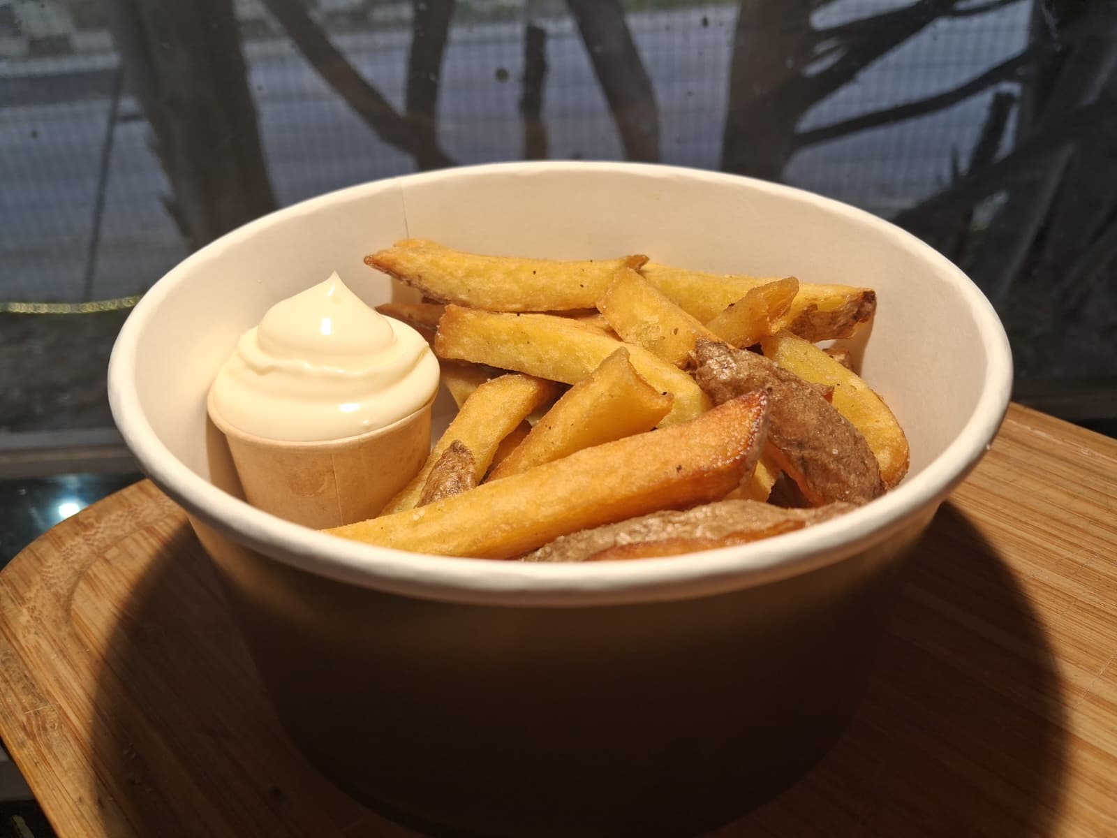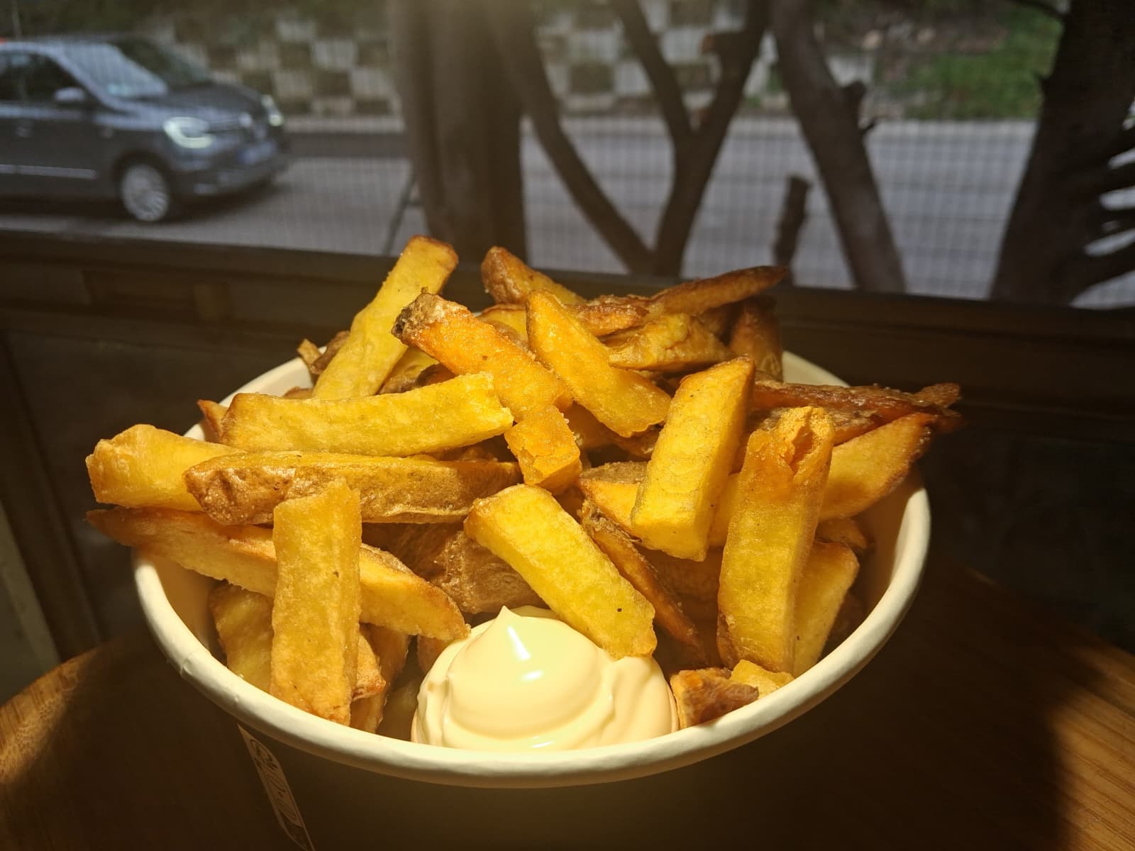 Véritable pomme de terre découpée et préparée avec amour dans le Bus. Rien à voir avec du surgelé ! 🥔🔥Sauce Heinz au choix